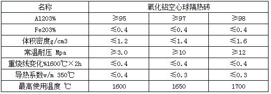 3、氧化鋁空心球磚的理化指標:
