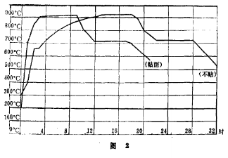 圖2為貼硅板和不貼硅板的爐溫曲線。 每燒一爐鑄鋼件可縮短十小時(shí),每爐可節(jié)約煤氣6000m3(合標(biāo)煤l250kg)。每立方米煤氣價(jià)0.025元,共計(jì)150元。每月生產(chǎn)按25爐計(jì)算,共可節(jié) 約煤氣十五萬立方米(合標(biāo)煤31250kg)。一臺(tái)爐每月 可為國(guó)家節(jié)約煤氣費(fèi)3750元。