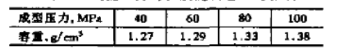 由表1可以看出,成型壓力從40MPa增加到lOOMPa,容重增加O.lg/cm3左右。為了增加結合強度,調整添加劑加入量,采用8OMPa壓力為宜。