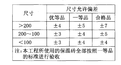 1)保溫磚進場驗收。按照燒結空心磚允許偏差(見表2),燒結空心磚外觀質量的要求進行材料驗收,同時按照每3萬塊為一驗收批(不足3萬塊也按一批計),對保溫磚的抗壓強度和密度進行復試,嚴把原材進場關,有效保證了工程實體的質量。