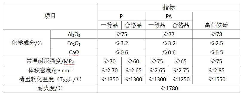 建材行業標準JC350—1993《水泥窯用磷酸鹽結合高鋁質磚》按結合劑分為兩個品種。磷酸鹽高鋁質磚結合劑濃度為42.5%〜50%磷酸溶液。代號為P,鎖縫磚代號為PC。磷酸鋁結合高鋁質耐磨磚(簡稱耐磨磚), 結合劑為工業磷酸、工業氫氧化鋁配制成的磷酸鋁溶液,摩爾比為:Al2O3: P2O5 =1:3.2,代號為 PA。