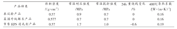 純鋸末輕質莫來石保溫磚的各項物理性能按照定型隔熱制品的檢測方法進行檢測,與以添加EPS顆粒為主的產品對比,結果如表3所列。
