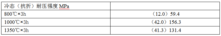 為了探索莫來(lái)石在復(fù)合膠結(jié)劑中形成的溫度,我們作了如下試驗(yàn),對(duì)1#試樣的生坯分別以800℃×3h,1000℃×3h和1350℃×3h燒后測(cè)其冷態(tài)強(qiáng)度,結(jié)果如下: