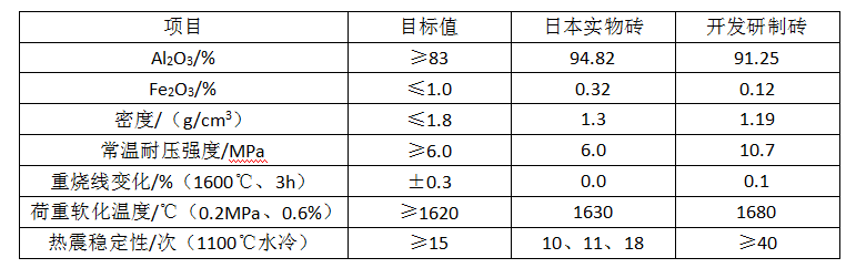 (1)對日本進口的氧化鋁空心球磚的使用情況進行總結和理化性能進行分析;
